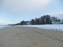| 大雪のあと、島尾海岸に行ってみた! 雪降ったあと、海岸を見に行くのは、初体験! どんなんなってるか? うわーつすごい! 真っ白! なんだこりゃー! 海岸じゃないみたい! とりあえず! 海面が見えるところまであるく! 先人が歩いた足あとを辿って、、。 半歩、踏み外すと、足がズッポリはまる! 危ない、、、。 物を落とすと、埋まる、、、 波打ち際まで進む、なるほど、波がくるところは雪が溶けてんだ、、! でもこんな、寒い季節、誰もいないや! でも犬の足あとが、、、あ! 散歩か? 寒いんで、撮影して早々に引き上げる!! 今度は、春に訪れたい、、、、 |